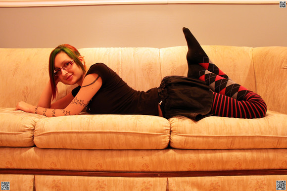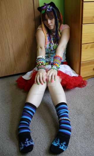 Sock-lust aside, though, this image is impressive and the model, I'm assuming to be you, is gorgeous. The color variety and distribution is inviting to the eyes, the eyes and facial expression have a seductive and alluring appeal, the position is comfortable and not overly-complicated. There's nothing not to like about this.