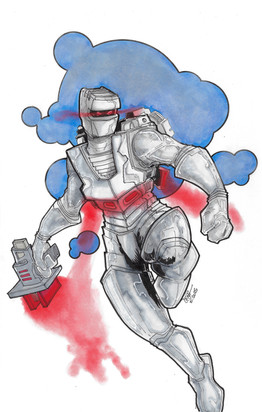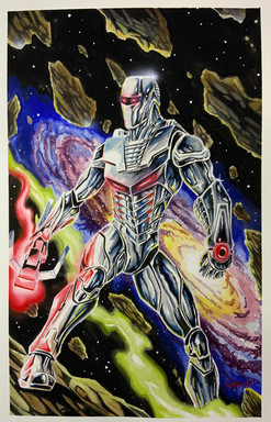 Another commission. Based on a toy that turned Marvel Comic, ROM Spaceknight!2.5"x3.5" Watercolor over inks.