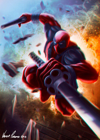 This painting is just full of motion! Good job with the blur, really brings out the high-octane action that is Deadpool.