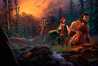Holy, exquisitely magnificent! This Sensational Feat of Chaos Landscape is stunning and The Grecian-Like Characters look incredible! The designs, waterfalls, river, brook, mountains, cliffs, ledges, boulders, water, ripples, expressions, poses, interaction, dress, sandals, braces, outfit, hair, trees, bushes, flowers, plant life, flock of birds, sunlight, rays, shadows, flight, movement, gleam, flow, romance,effects, realisticness, perspective, atmosphere, hues, textures, concept, composition, uniqueness, lighting, colors, style, and other details are also gorgeous! Amazingly beautiful work!
