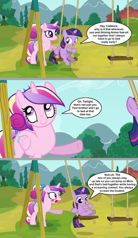 "Sorry, Twilight." said Cadence, "All these sleepless days and nights are making me cranky."