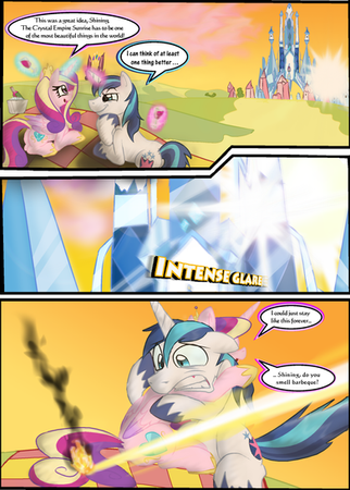 I feel I should point out here that Shining Armor is turned off by the horrendously cheesy move by Cheeseball there, and not so much for Cheeseball himself. I mean, wouldn't you be?