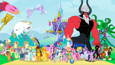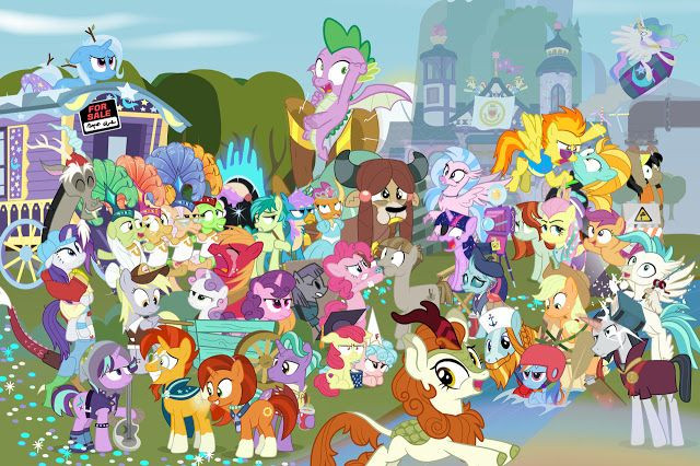 Nice. This definitely sums up Season 8's awfulness. Love Discord and Rarity and Flim & Flam on top of the School. And Chancellor Neighsay. He definitely deserves a hit on the head with a book. A lot of books.