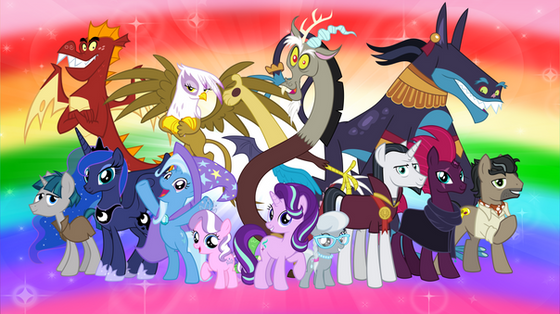 8. Gallus, Goth Starlight Glimmer, Sunburst, Stellar Flare and Firelight