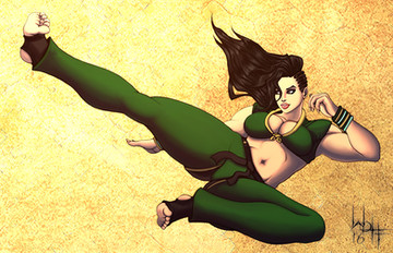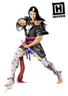 #girl #kick #kungfu #muscles #scars #woodensandal #robotarm
