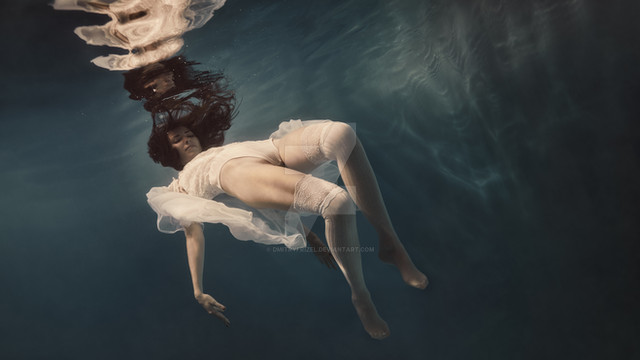 Very nice shot! Β I like how her face is not strained, as one tends to be underwater, making it seem as if she is somewhere else. Β Excellent composition!