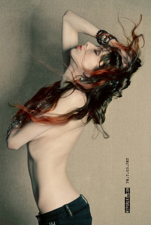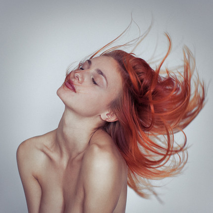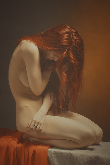Exceptional lightning! I like both the intensity and the composition of the light sources. I also enjoy the colour of the background, I think it matches very nicely the model's hair colour. Compliments to the model too, I could never imagine coming up or getting into a pose like this one. I'm very glad I stumbled upon your work, many thanks for sharing it!