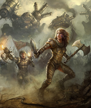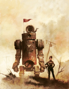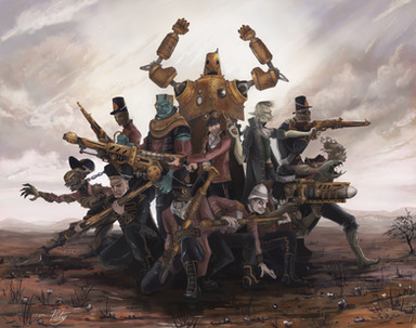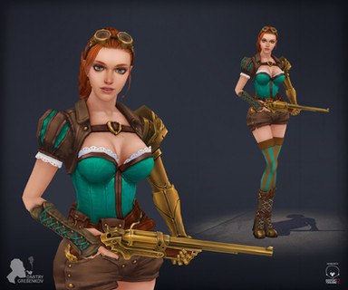 Like the steampunk feel to this, with regard to the rifle and the monocle optic over her right eye.