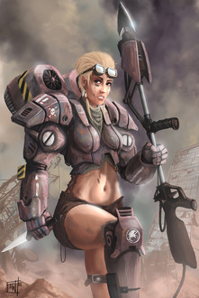Nice work. I'm digging the contrast between the brushed background and the character in the foreground. Very cool!Β