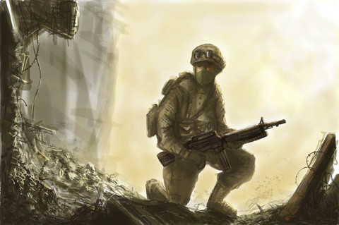 Done this for fun and also to win some battle funds so i can pimp out my shotgun-recon dude in Battlefeild Play4Free.Quick and nasty, done one layer(besides post production).