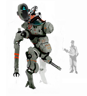 cool to see you drawing robots and stuff again. does the robot have a set of mechanical genitalia so it can masturbate while it watches?