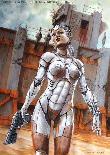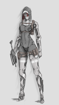 Idea i had for a wile about former sexbot who acts as bodyguard for strange kid with gasmask in some sort of post apocalyptic undeground world.EDIT: added some dirt texture.