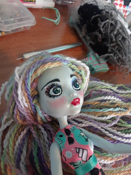 This is Toralei, the girl that everyone loves to hate (or just plain old HATES). She was originally a Clawdeen head with a "Gloom Beach" Draculaura body. I gave her a full-body repaint using acrylics and re-rooted her using saran hair from dollyhair.com.Related content