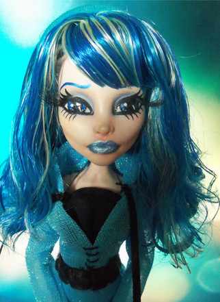This is Toralei, the girl that everyone loves to hate (or just plain old HATES). She was originally a Clawdeen head with a "Gloom Beach" Draculaura body. I gave her a full-body repaint using acrylics and re-rooted her using saran hair from dollyhair.com.Related content