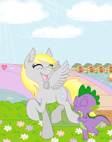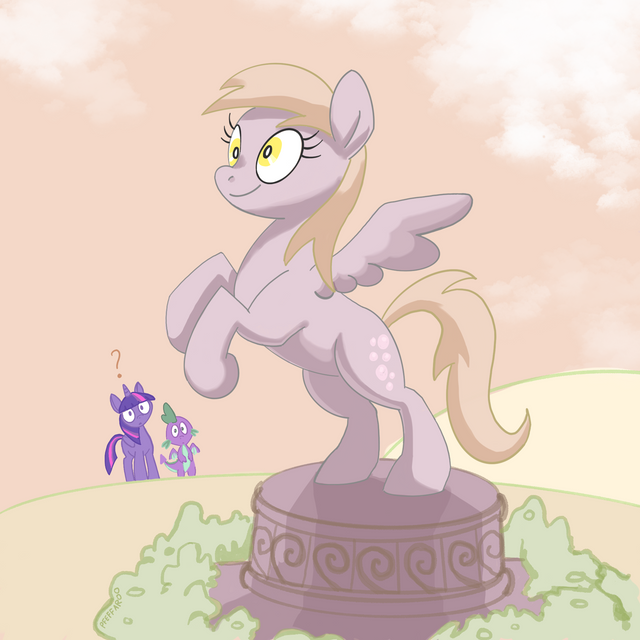 I was wondering, how Derpy would look with Rarity's mane, but sadly I couldn't find a picture. So I decided to make one myself. Spike seems to like it^^.I vectored Derpy and her hair myself, it's the first time I ever vectored so that's why it's a bit sloppy, especially in her face. Sorry, nobody ever told me how it works, so I might did it wrong