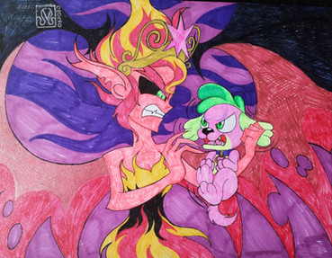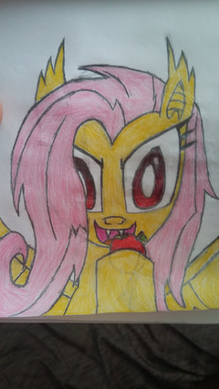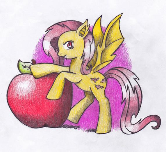 I recently watch one episode of My Little Pony Season 4 called "Bats!" When Twilight's spells backfires on Fluttershy, while she rounding up to get rid off the vampire fruit bats, Fluttershy turns into a vampire bat-pony, thirsting out for apples.All characters from My Little Pony are respectively owned by Hasbro/DHX Media