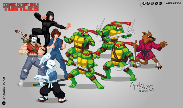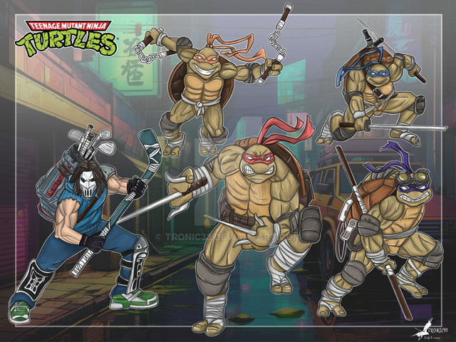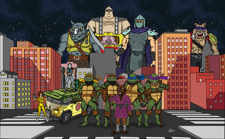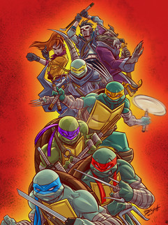 During the weekdays, I created my own redesign characters based on the Teenage Mutant Ninja Turtles featuring all six in one group; Leonardo, Raphael, Michelangelo, Donatello, Master Splinter and April O'Neil.The design consists the graphic novel style between the original Mirage comic and the 1987 animated series but with a more street-level and gritty look.