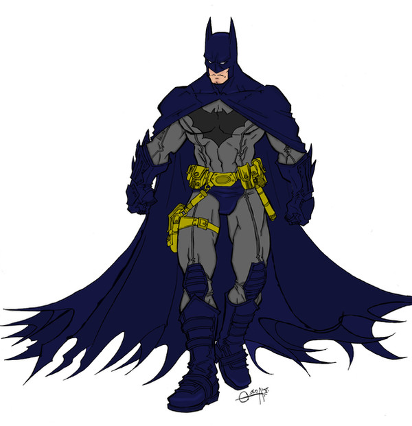An awesome drawing and good job on the coloring. This batman looks like a cross between new age and old batman.