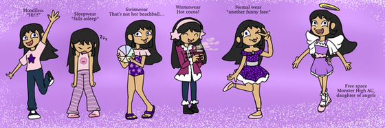 Made some outfits for my version of Sam for different situations. Here there's bedtime, formal/dance and beach/swimwear.