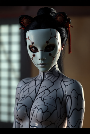 #digitalart #portrait #beauty #fantasyart #horror #body #bodysuit #creepy #maskedgirl #maskedwoman #porcelainmask #strange #bodysuitgirl #kintsugi