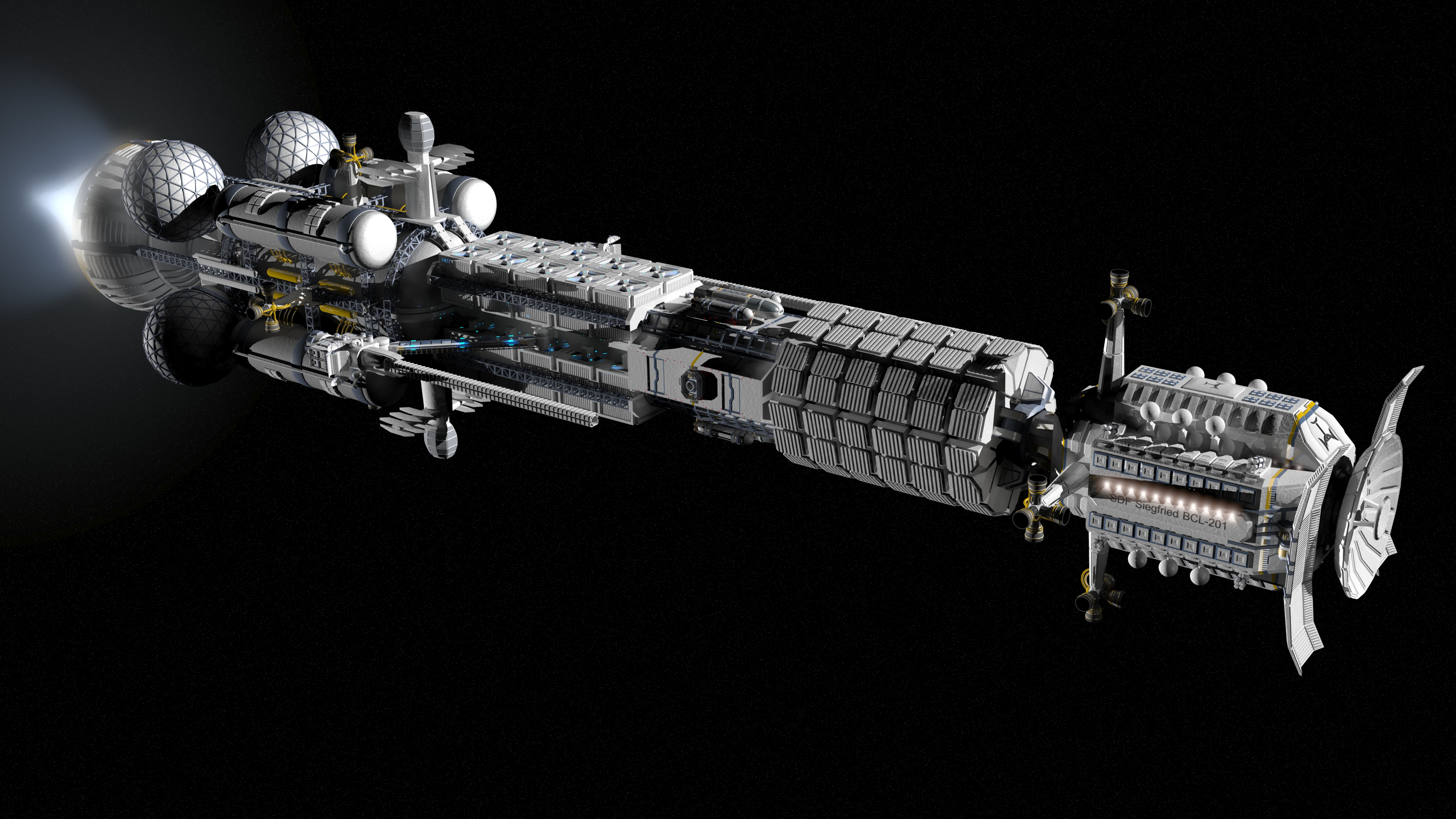 Still it's an useful vessel, used primarily to carry heavy cargo among capital ships and stations. It can also assist in docking maneuvers, external repairs and maintenance and other utility missions.
