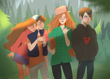 Pines family dog pile! I didn't really intend to draw Stan wearing Ford's coat, but it can be if you want.