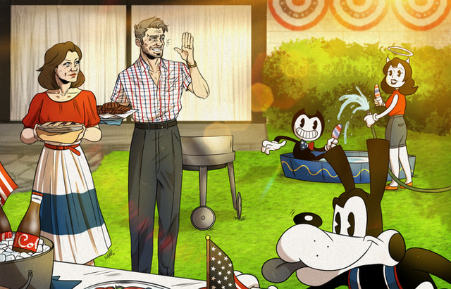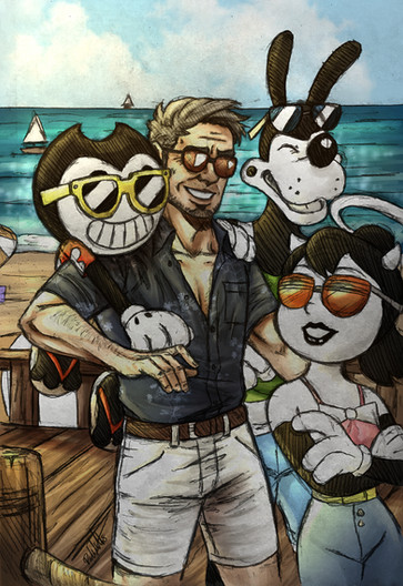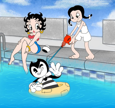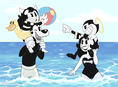 I wonder if Bendy's eyes goes to Alice's swimwear taking advantage of his sunglasses ewe