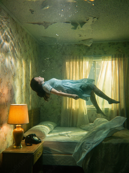 Nice concept. For a short blink I thought She was "caught" up in the air - which I think would be great combined with the mood, B&W washed colors and texture. Nevertheless I like the final outcome,congrats!