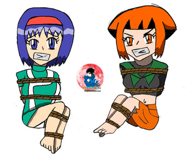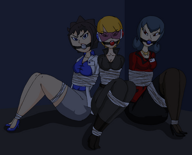 Because I was running out of "themed" Ideas.So here we got Lovely women of Pokemon science; bound up and gagged in a similar fashion. The real kick is that they all have a medium,which the franchise overlaps,where they are from(or in Juniper's case,started): Professor Juniper (games), Professor Ivy (the anime), and Roseanne (the manga..and like,one card from the TGC). Some could question why I picked Roseanne, but then again, this is MY work...and I couldn't be bother digging even deeper into the manga.