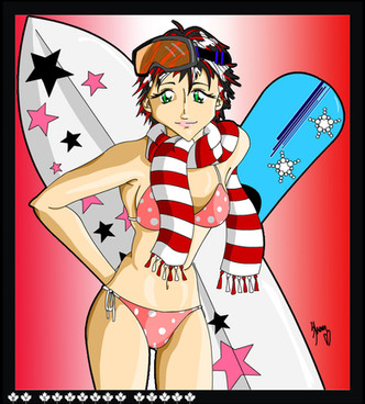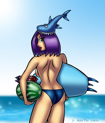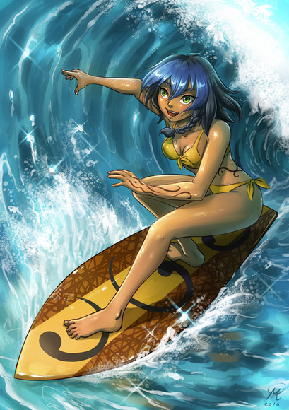 oh yeah, and the Board supposed to says "BEACHy" not "BITCHy"... although it wouldn't be out of character for her to have a board say that so if it makes the image more fun for you then it says "Bitchy"