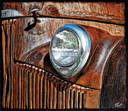#car #green #1950s #bumper #cadillac #chrome #digitalart #digitalillustration #oldcar #realisticdrawing #rusty #artprompt
