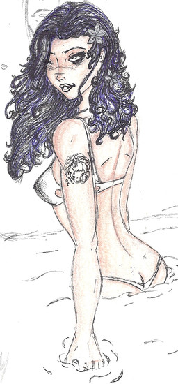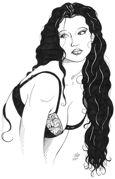 Perhaps I should call this one 'Bottoms'...? Just a quick drawing I inked out some time ago that's partly featured in the logo of my official site [link]My obsession with brunettes with hair all the way down to shapely backsides or draped over well-formed breasts continues