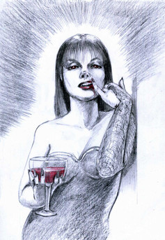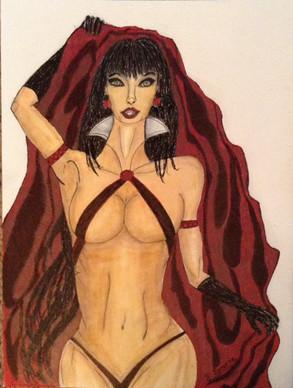 Mina Harker, the last Bride of Dracula. I was insired to do this piece when I had on the original Bela Legosi version recently, and there's a scene where Mina is being spoken to by Dracula - as a bat. He swoops over, squeeling at her, and she calmly listens and obeys. Meanwhile, Johnathan Harker swipes at the air, shooing away this 'giant bat'."Look out, dear," he says, "he'll get in your hair."