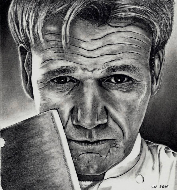 Hi it’s Rick... I'm going to show SEVERAL step photos along the way on this one. This is Chef Gordon Ramsey. I chose THIS photo because of it's RICH content, and it's HIGH amount of TONAL VALUES, CONTRAST as well as it being a high resolution file, which believe it or not, are rare to find on the web for some reason?!?!? Finding JUST the right photo is half the battle to a good drawing. NEVER EVER work with a low quality photo!!!
