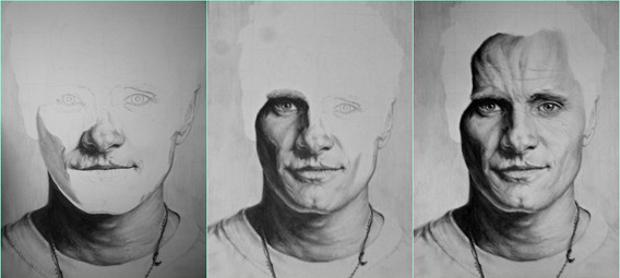 This step simply shows the after effects of blending the FIRST layer of graphite on the whole face. MUCH more to do yet...