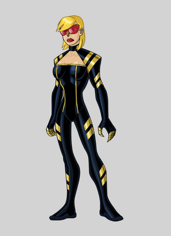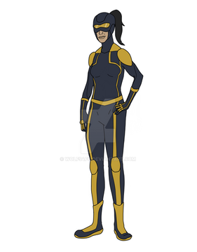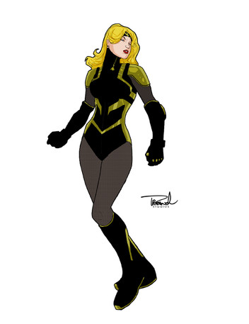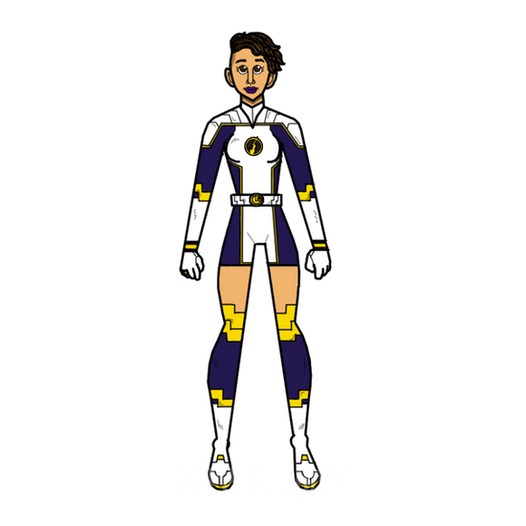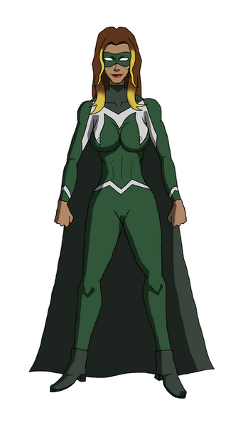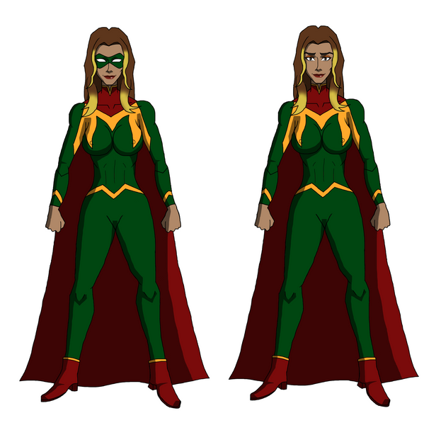 The leader of the superhero team, the Spartan Squadron. She is one of the most powerful supes created, employed and sponsored by the corrupt corporation, Burke Technologies Inc., Chloe Nelson was not the first General Cosmic however. Before Chloe, another individual was introduced as General Cosmic, a man named Jeffrey Geller. However, Geller was an unstable, sadistic and murderous sociopath. During a supposed hostage rescue, he ended up murdering everyone, including the hostages. Realizing they created a monster, Burke Technologies forcibly placed Geller in a cyrostasis chamber. They covered up the incident and told the public that General Cosmic went to space to fight a galactic level threat called "Tharkeon the Dark Titan". Burke Technologies went about replacing him and out of many candidates that they injected with their mysterious super-serum, Chloe Nelson was the only one who successfully developed powers (and the only one who survived the process). She got the same powers as the former General Cosmic: super strength, flight, durability and being able to shoot "solar" energy out of her hands. She is presented to the public as the "cousin" of the first General Cosmic, who "voluntarily went to Earth to help protect it". Despite being one of Burke Technologies's most powerful superheroes, she is still significantly weaker than actual superheroes like Solaris and Maravillosa. While at first, she genuinely wanted to become a hero and do good, she ended up becoming a willing lapdog for the company, as she became too indulged into her lavish lifestyle and fame. She hates the Legion of Defenders, seeing them as rivals, and she would often lead her team in attempts to take down the Legion.She is a parody/knock off of Carol Danvers/Captain Marvel from the MCU.