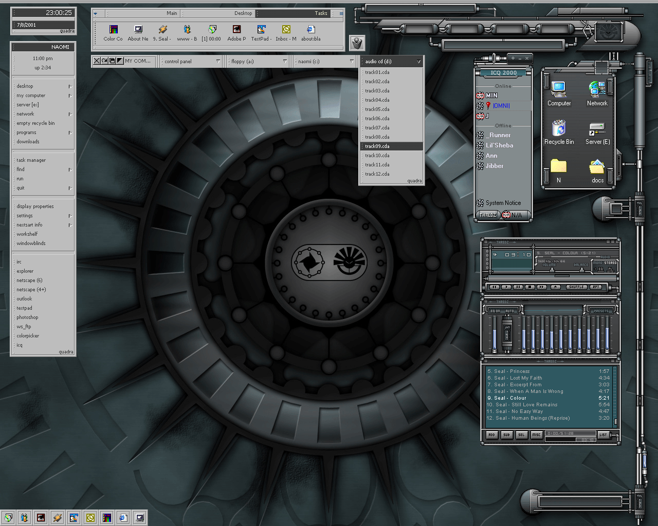 It is called (Logika Premium Suite) buy pixtudio. [link] It utilizes and skins a lot of the programs that come with object desktop. also skins winamp and WMP. The Icons on the dock on the side I found on the net. The dock is called object dock and can be gotten for free at stardock.com. Running all of this all the time will slow my computer down a bit but I don't use it with this much stuff running very often. ( I was just showing off what it can do) Just the normal windowblinds skin and the skinned winamp causes no problems at all.Related content