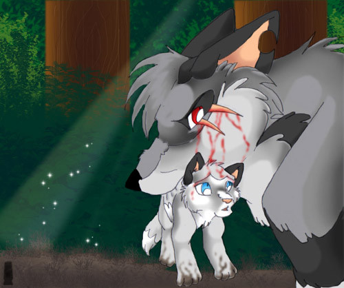 He came too late though, even though he fought the Alpha male fiercly, the she-wolf and all her pups were dead. Except one!