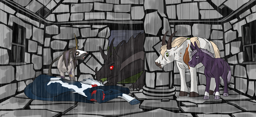 Eventually the frail body of the dainty lord disappeared somewhere between the hulking dark bodies of the villains, who laughed and howled in joy while eventually there was neither sound nor movement coming from Vaelerian anymore. Divi and Flurry stood pressed tight against Leia, their eyes wide while Flurry kept crying out Vaelerian's name, yet there was no response.