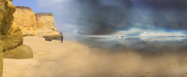 I would paint this work, I would heighten the cliff, in order to hide the sealine, too close to the