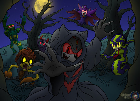 It all started when someone went missing. A young deer never returned back home after having been seen following someone into the woods. Shadow realized something was wrong when he saw the unfamiliar wolves wandering around the town, and he should've told someone when he decided to follow one into the forest. Now he was surrounded by a pack of feral mobians, fighting for his life.Twitter voted on Shadow for the halloween picture, and I had in mind a scene of him fighting off some sort of creatures. I eventually got the idea of him facing off a pack of hungry, vicious wolves! I liked the idea of some mobians possibly staying in touch with their ancestors roots, what do you think?