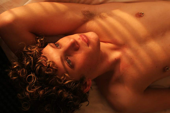 wow... I dont know if I should be staring at his eyes, his lips or his nipple rings!! I love the angle & the expression!! good job!