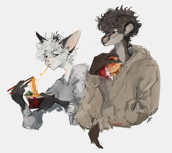 #anthro #borzoi #canine #cat #creature #dog #feline #picnic #sketch