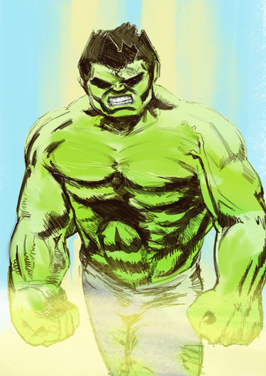 Cool expression both in his face and in the pose. Not all rage-y. Right after he finished smashing maybe.