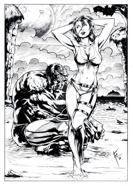 He he~ I love how sly she looks on hulks lap. Hand should move a bit lower~