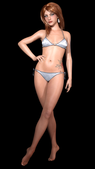 I went back into Vue and changed the color of the swimsuit, tweaked the lighting a little, and rendered again.