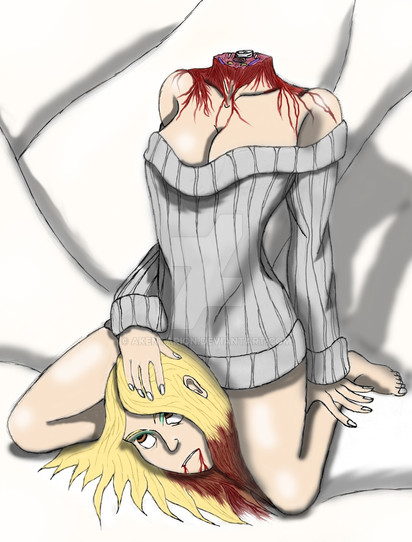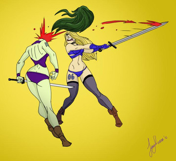 Love it that both got each other, though we concentrate on the demoness' head being cut off.