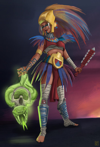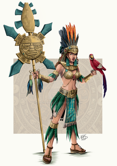 Part of an ongoing homework assignment to bring this character through the ages. Her costume is a mix of Aztec and Byzantine pieces.Related content