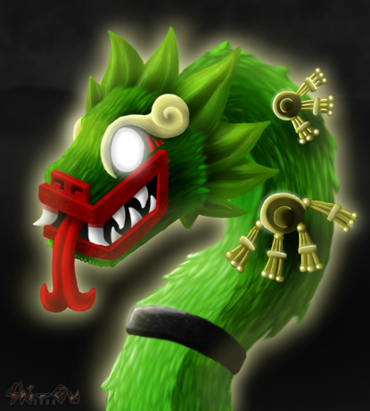 Quetzl's eyes are hypnotically terrifying. I love it and I def wouldn't mind playing a video game with a boss battle like that!