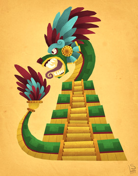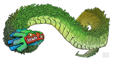 Awesome interpretation of Quetzalcoatl and I like the influence of Aztec art in the geometric patterns and shapes.